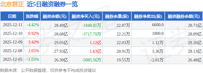 北京君正融资融券信息显示,融资方面,当日融资买入2.89亿元,融资偿还3.08亿元,融资净偿还1848.81万元。融券方面,融券卖出8600.0股,融券偿还2000.0股,融券余量22.87万股,融券余额2141.37万元。融资融券余额28.71亿元。