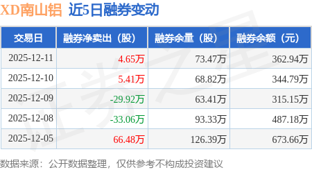 证券之星消息,12月11日,XD南山铝(600219)融资买入1.54亿元,融资偿还1.32亿元,融资净买入2126.92万元,融资余额17.03亿元。