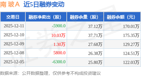 融券方面,当日融券卖出1.1万股,融券偿还1.69万股,融券净买入5900.0股,融券余量37.12万股。