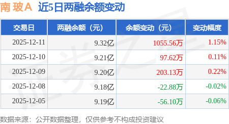 证券之星消息,12月11日,南 玻A(000012)融资买入1483.8万元,融资偿还422.89万元,融资净买入1060.9万元,融资余额9.3亿元,近3个交易日已连续净买入累计1310.82万元。
