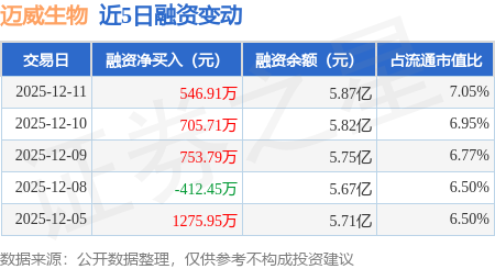 证券之星消息,12月11日,迈威生物(688062)融资买入2468.01万元,融资偿还1921.1万元,融资净买入546.91万元,融资余额5.87亿元,近3个交易日已连续净买入累计2006.41万元。