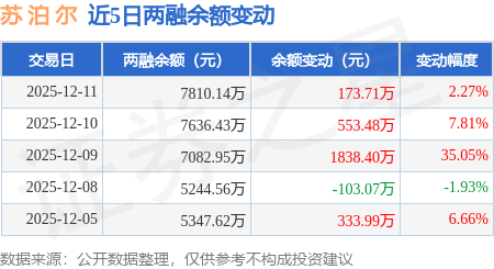 证券之星消息,12月11日,苏 泊 尔(002032)融资买入787.94万元,融资偿还613.86万元,融资净买入174.07万元,融资余额7766.93万元,近3个交易日已连续净买入累计2566.97万元。