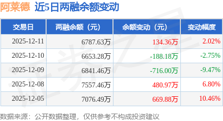 证券之星消息,12月11日,阿莱德(301419)融资买入550.86万元,融资偿还416.5万元,融资净买入134.36万元,融资余额6787.63万元。