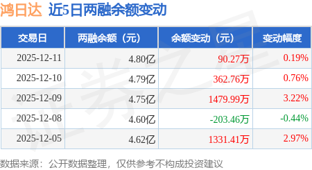 证券之星消息,12月11日,鸿日达(301285)融资买入5869.02万元,融资偿还5778.75万元,融资净买入90.27万元,融资余额4.8亿元,近3个交易日已连续净买入累计1933.02万元,近20个交易日中有11个交易日出现融资净买入。