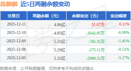证券之星消息,12月11日,森麒麟(002984)融资买入2815.98万元,融资偿还2747.31万元,融资净买入68.66万元,融资余额4.75亿元。
