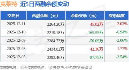 证券之星消息,12月11日,克莱特(920689)融资买入430.83万元,融资偿还385.81万元,融资净买入45.02万元,融资余额2264.2万元。