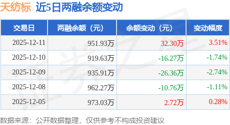 证券之星消息,12月11日,天纺标(920753)融资买入64.28万元,融资偿还31.99万元,融资净买入32.3万元,融资余额951.93万元。