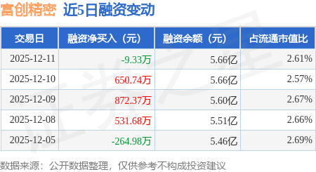 证券之星消息,12月11日,富创精密(688409)融资买入4954.7万元,融资偿还4964.03万元,融资净卖出9.33万元,融资余额5.66亿元。