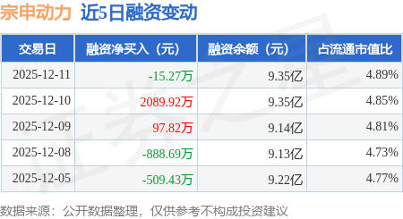 证券之星消息,12月11日,宗申动力(001696)融资买入2695.94万元,融资偿还2711.2万元,融资净卖出15.27万元,融资余额9.35亿元。