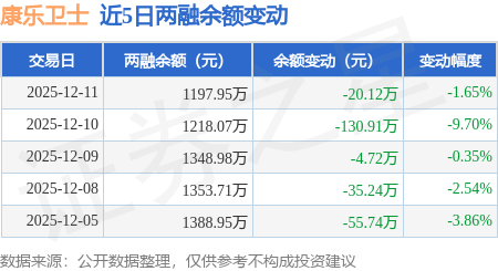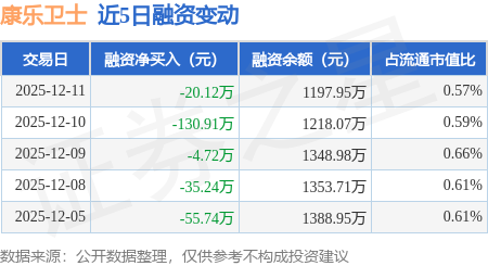证券之星消息,12月11日,康乐卫士(920575)融资买入48.51万元,融资偿还68.63万元,融资净卖出20.12万元,融资余额1197.95万元。