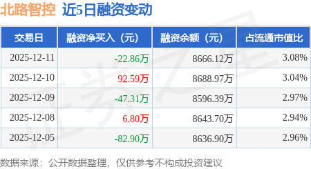 证券之星消息,12月11日,北路智控(301195)融资买入266.84万元,融资偿还289.7万元,融资净卖出22.86万元,融资余额8666.12万元,近20个交易日中有11个交易日出现融资净买入。