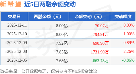 证券之星消息,12月11日,新 希 望(000876)融资买入3220.19万元,融资偿还3248.25万元,融资净卖出28.06万元,融资余额7.94亿元。