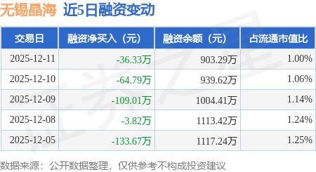 证券之星消息,12月11日,无锡晶海(920547)融资买入131.52万元,融资偿还167.85万元,融资净卖出36.33万元,融资余额903.29万元。