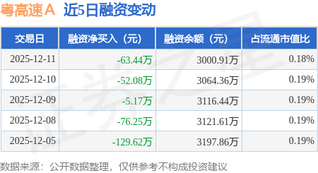 证券之星消息,12月11日,粤高速A(000429)融资买入345.29万元,融资偿还408.73万元,融资净卖出63.44万元,融资余额3000.91万元。