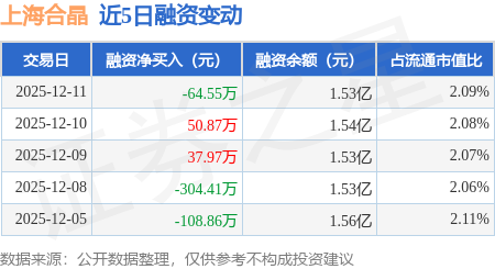 证券之星消息,12月11日,上海合晶(688584)融资买入517.97万元,融资偿还582.53万元,融资净卖出64.55万元,融资余额1.53亿元。