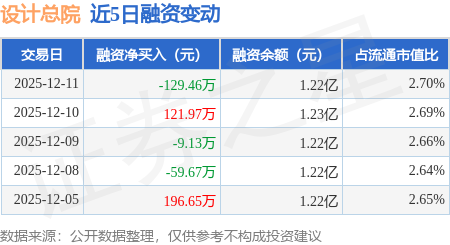 证券之星消息,12月11日,设计总院(603357)融资买入348.26万元,融资偿还477.71万元,融资净卖出129.46万元,融资余额1.22亿元,近20个交易日中有11个交易日出现融资净买入。