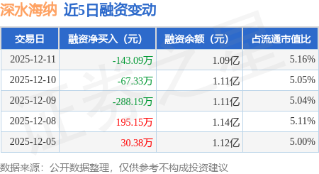 证券之星消息,12月11日,深水海纳(300961)融资买入179.76万元,融资偿还322.84万元,融资净卖出143.09万元,融资余额1.09亿元,近20个交易日中有12个交易日出现融资净买入。