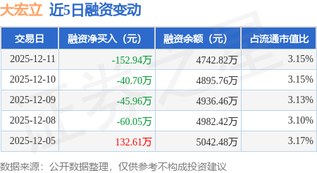 证券之星消息,12月11日,大宏立(300865)融资买入202.46万元,融资偿还355.4万元,融资净卖出152.94万元,融资余额4742.82万元。