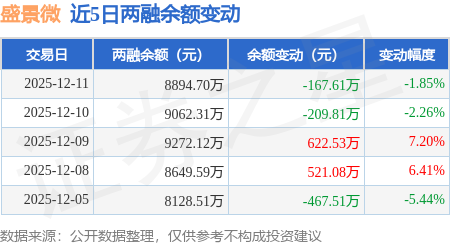 证券之星消息,12月11日,盛景微(603375)融资买入640.96万元,融资偿还808.44万元,融资净卖出167.48万元,融资余额8889.43万元。