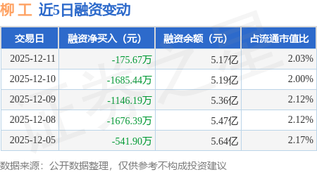 证券之星消息,12月11日,柳 工(000528)融资买入1490.36万元,融资偿还1666.02万元,融资净卖出175.67万元,融资余额5.17亿元。