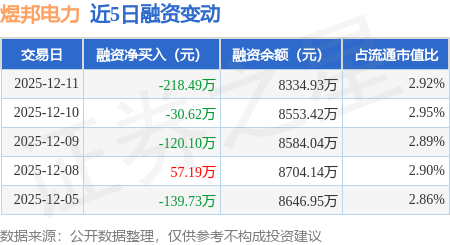 证券之星消息,12月11日,煜邦电力(688597)融资买入190.37万元,融资偿还408.85万元,融资净卖出218.49万元,融资余额8334.93万元。