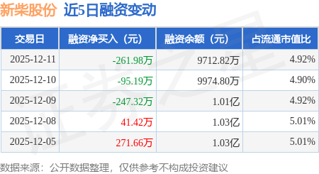 证券之星消息,12月11日,新柴股份(301032)融资买入224.02万元,融资偿还486.0万元,融资净卖出261.98万元,融资余额9712.82万元。