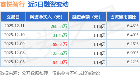 证券之星消息,12月11日,喜悦智行(301198)融资买入237.94万元,融资偿还506.48万元,融资净卖出268.54万元,融资余额1.16亿元。
