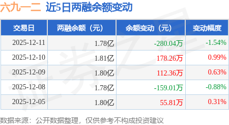 证券之星消息,12月11日,六九一二(301592)融资买入336.72万元,融资偿还616.57万元,融资净卖出279.85万元,融资余额1.78亿元,近20个交易日中有11个交易日出现融资净买入。