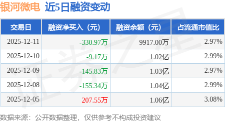 证券之星消息,12月11日,银河微电(688689)融资买入200.04万元,融资偿还531.01万元,融资净卖出330.97万元,融资余额9917.0万元。