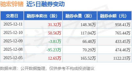 证券之星消息,12月11日,驰宏锌锗(600497)融资买入6609.97万元,融资偿还6961.01万元,融资净卖出351.05万元,融资余额12.69亿元。