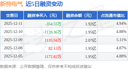 证券之星消息,12月11日,新特电气(301120)融资买入2494.22万元,融资偿还2848.77万元,融资净卖出354.55万元,融资余额1.92亿元。