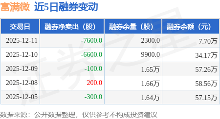 证券之星消息,12月11日,富满微(300671)融资买入1190.18万元,融资偿还1847.8万元,融资净卖出657.62万元,融资余额3.45亿元。