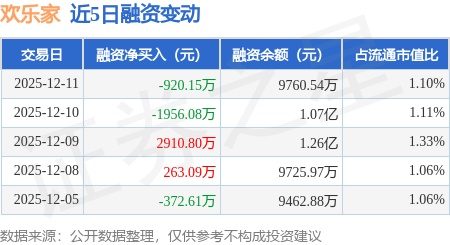 证券之星消息,12月11日,欢乐家(300997)融资买入5250.66万元,融资偿还6170.82万元,融资净卖出920.15万元,融资余额9760.54万元。