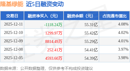 证券之星消息,12月11日,隆基绿能(601012)融资买入1.85亿元,融资偿还1.96亿元,融资净卖出1118.24万元,融资余额55.31亿元。