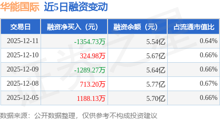 证券之星消息,12月11日,华能国际(600011)融资买入2511.04万元,融资偿还3865.78万元,融资净卖出1354.73万元,融资余额5.54亿元。