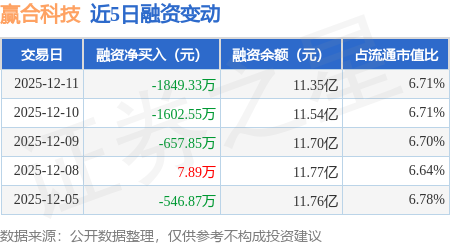 证券之星消息,12月11日,赢合科技(300457)融资买入2619.72万元,融资偿还4469.05万元,融资净卖出1849.33万元,融资余额11.35亿元。