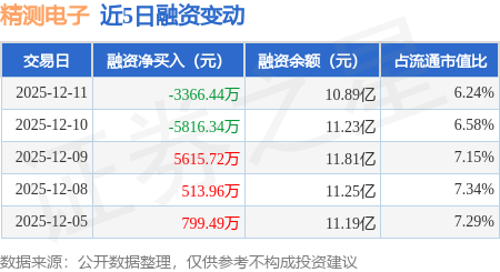证券之星消息,12月11日,精测电子(300567)融资买入7605.42万元,融资偿还1.1亿元,融资净卖出3366.44万元,融资余额10.89亿元,近20个交易日中有11个交易日出现融资净买入。