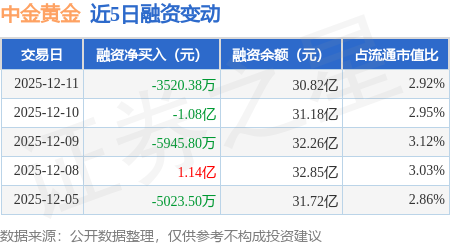 证券之星消息,12月11日,中金黄金(600489)融资买入1.15亿元,融资偿还1.5亿元,融资净卖出3520.38万元,融资余额30.82亿元。