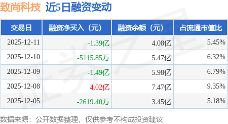 证券之星消息,12月11日,致尚科技(301486)融资买入2.08亿元,融资偿还3.47亿元,融资净卖出1.39亿元,融资余额4.08亿元。