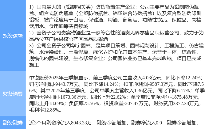 证券之星消息,中锐股份12月12日涨停收盘,收盘价3.67元。该股于9点55分涨停,未打开涨停,截止收盘封单资金为9504.2万元,占其流通市值2.39%。
