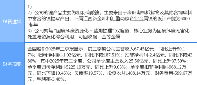 该股为有色 · 铜,有色金属,有色 · 镍概念热股,当日有色 · 铜概念上涨2.14%,有色金属概念上涨1.13%,有色 · 镍概念上涨0.99%。