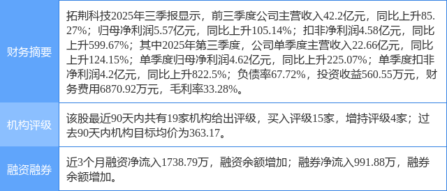 2025年11月2日,东吴证券研究员周尔双,李文意发布了对拓荆科技的研报《2025年三季报点评:Q3业绩持续高增,看好公司薄膜&先进封装设备双轮驱动》,该研报对拓荆科技给出“买入”评级。证券之星数据中心根据近三年发布的研报数据计算,该研报作者对此股的盈利预测准确度为86.02%。