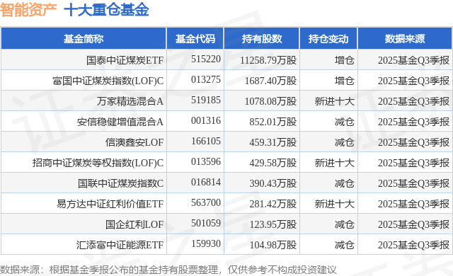 根据2025基金Q3季报公募基金重仓股数据,重仓该股的公募基金共23家,其中持有数量最多的公募基金为国泰基金的国泰中证煤炭ETF。国泰中证煤炭ETF目前规模为114.13亿元,最新净值1.0894(12月11日),较上一交易日下跌0.86%,近一年下跌10.2%。该公募基金现任基金经理为吴中昊。吴中昊在任的基金产品包括:国泰中证500指数增强A,管理时间为2022年1月28日至今,期间收益率为26.22%;国泰中证内地运输主题ETF,管理时间为2022年11月30日至今,期间收益率为-4.3%;国泰沪深300指数增强A,管理时间为2022年12月30日至今,期间收益率为18.29%;国泰国证新能源汽车指数C,管理时间为2022年12月30日至今,期间收益率为13.63%。