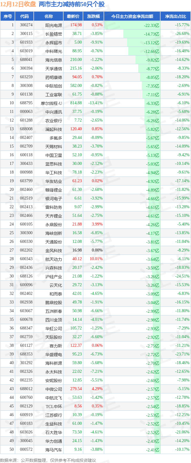 两市主力减持最多的前十只个股为: