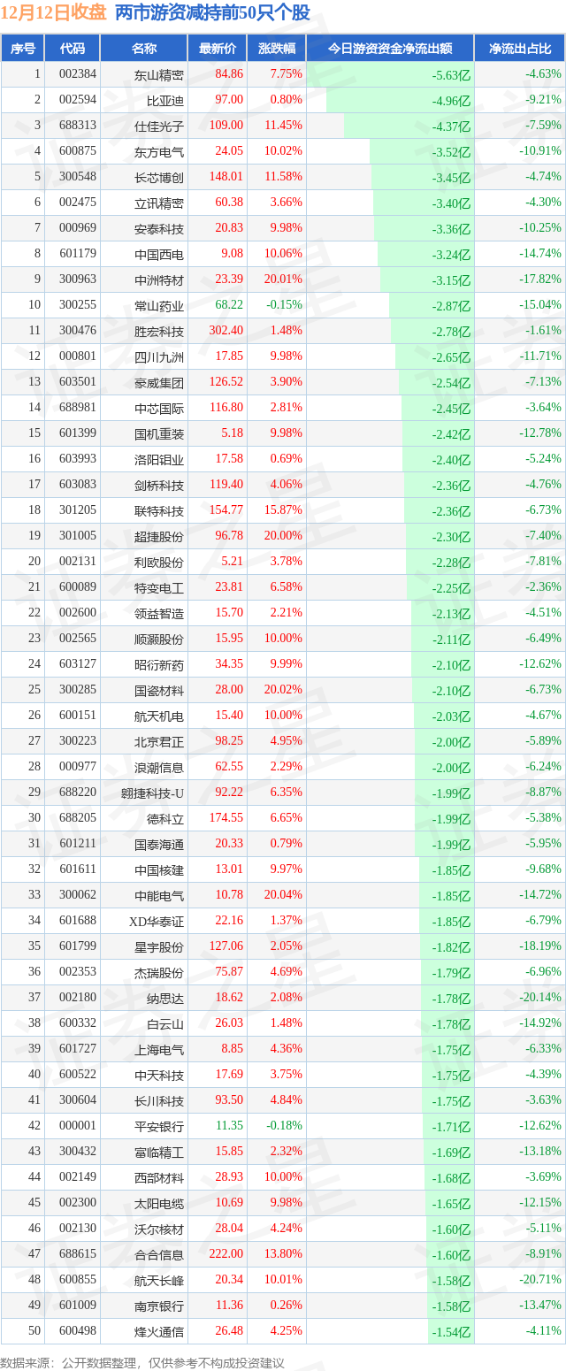 两市游资减持最多的前十只个股为: