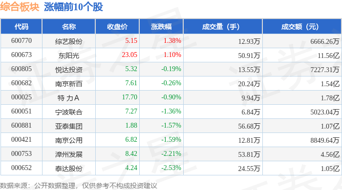 从资金流向上来看,当日综合板块主力资金净流出8730.23万元,游资资金净流出1376.72万元,散户资金净流入1.01亿元。综合板块个股资金流向见下表: