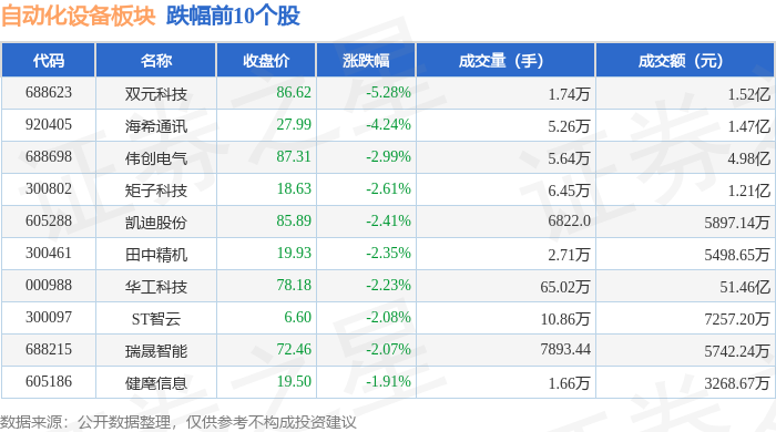 从资金流向上来看,当日自动化设备板块主力资金净流出8.16亿元,游资资金净流出2.47亿元,散户资金净流入10.63亿元。自动化设备板块个股资金流向见下表: