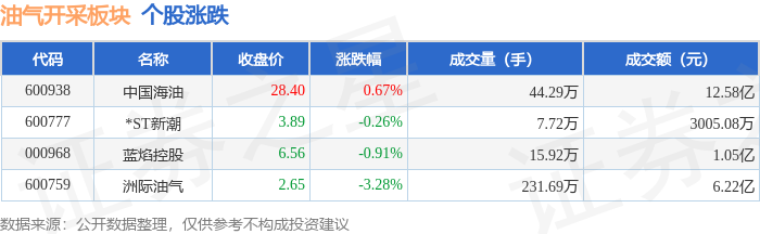 证券之星消息,12月12日油气开采板块较上一交易日上涨0.06%,中国海油领涨。当日上证指数报收于3889.35,上涨0.41%。深证成指报收于13258.33,上涨0.84%。油气开采板块个股涨跌见下表: