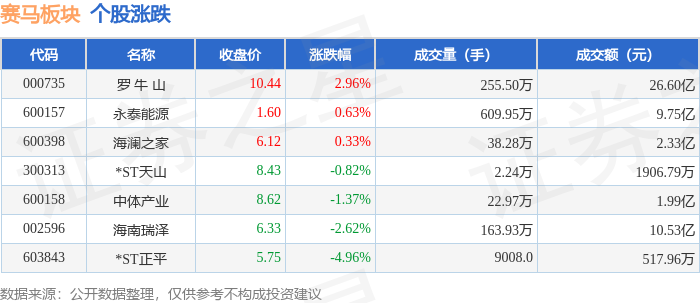 从资金流向上来看,当日赛马板块主力资金净流出9298.69万元,游资资金净流入3335.8万元,散户资金净流入5962.9万元。赛马板块个股资金流向见下表: