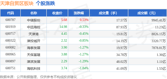 证券之星消息,12月12日天津自贸区板块较上一交易日下跌0.4%,海航科技领跌。当日上证指数报收于3889.35,上涨0.41%。深证成指报收于13258.33,上涨0.84%。天津自贸区板块个股涨跌见下表: